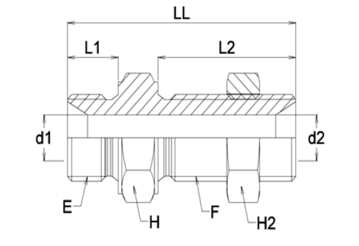 Aansluiting E en F : BSP buitendraad, afdichting: 60° conus.