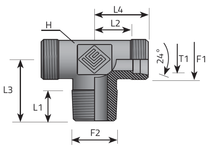 Uitvoering: T-inschroefkoppeling NPT / DIN 24” conus.