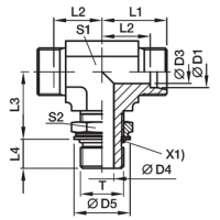 Uitvoering: T-stuk 24° Pijpopname volgens DIN/EN/ISO 8434-1 / UNF instelbaar