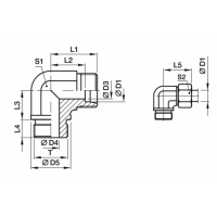 Uitvoering: haakse inschroefkoppeling metrische konische draad / DIN 24” conus.