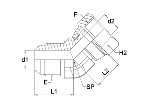 Aansluiting E: UNF buitendraad, afdichting: JIC 74° conus.