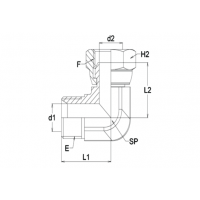 Aansluiting F: BSP wartel binnendraad, afdichting: 60° bolconus.