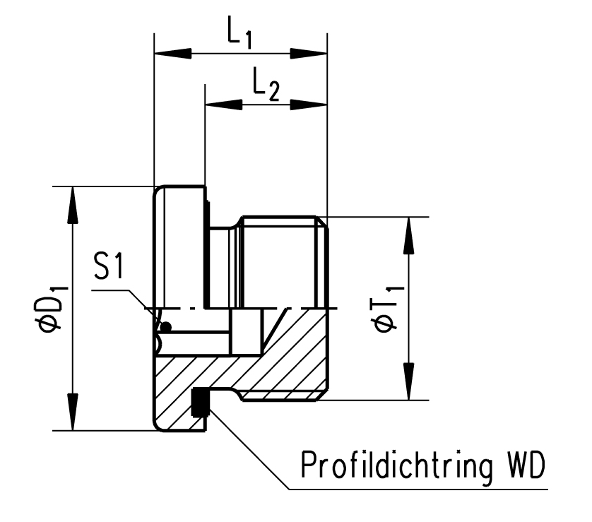 Uitvoering: Binnenzeskantplug BSPP male met elastische dichting (ISO 9974).