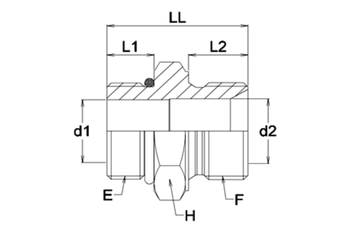 Aansluiting E: SAE UNF buitendraad, afdichting: O-ring.