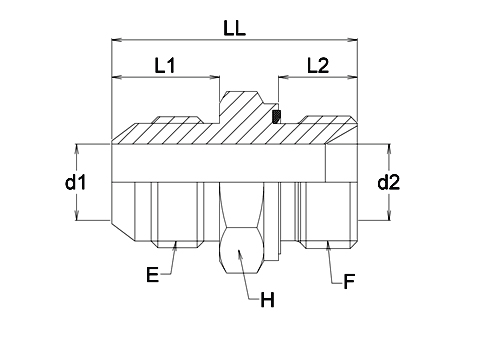 Aansluiting E: UNF buitendraad, afdichting: JIC 74° conus.