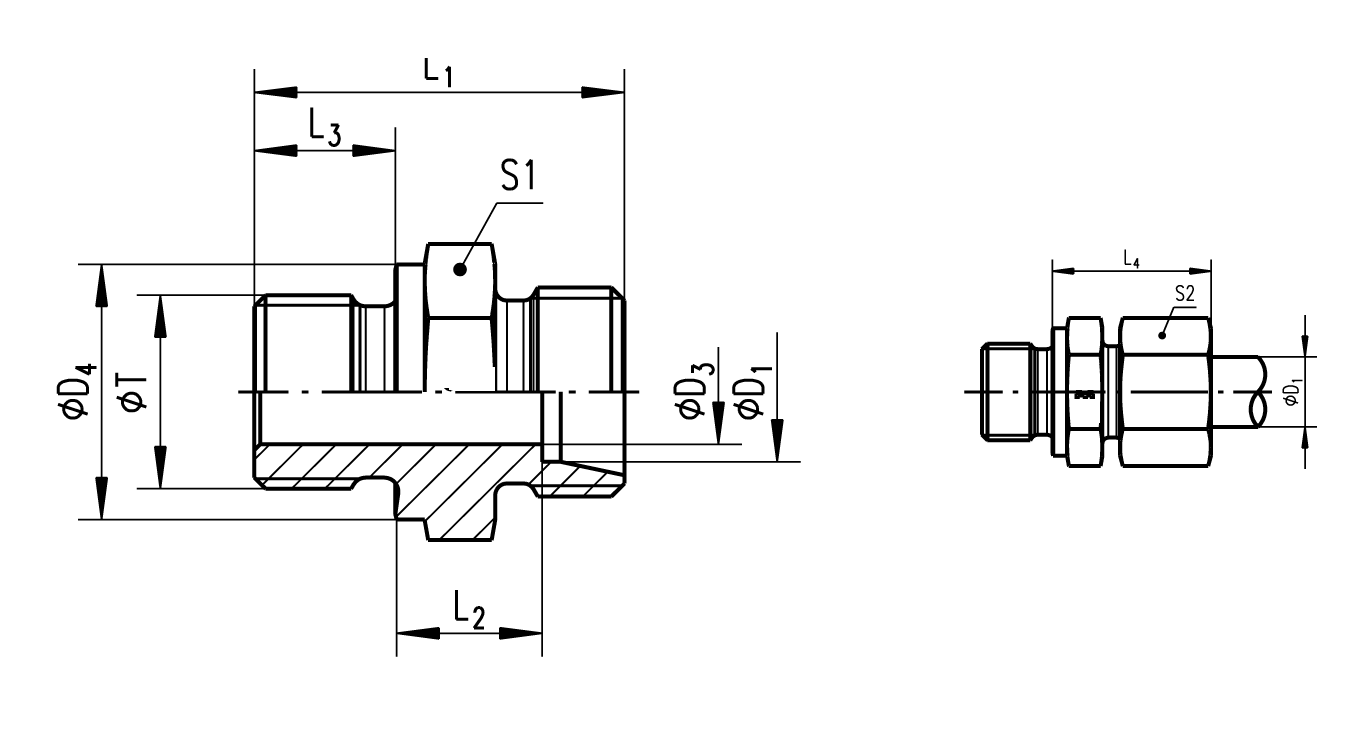 Uitvoering: inschroef metrisch, Form B, volgens DIN 3852-2 - Din S 24° Pijpopname volgens DIN/EN/ISO 8434-1