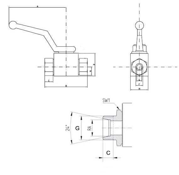 Aansluiting: 24° Pijpopname volgens DIN/EN/ISO 8434-1 serie L/S.