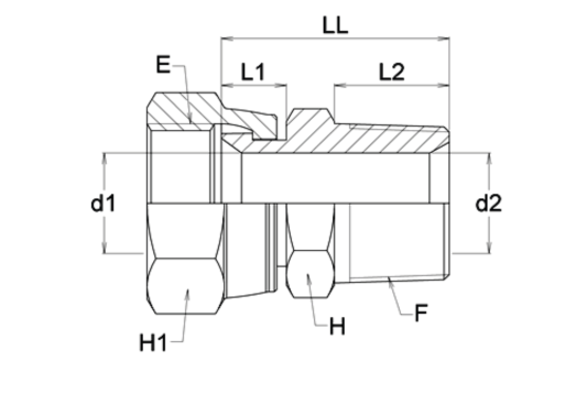 Aansluiting E: UNF wartel binnendraad, afdichting: JIC 74° conus.