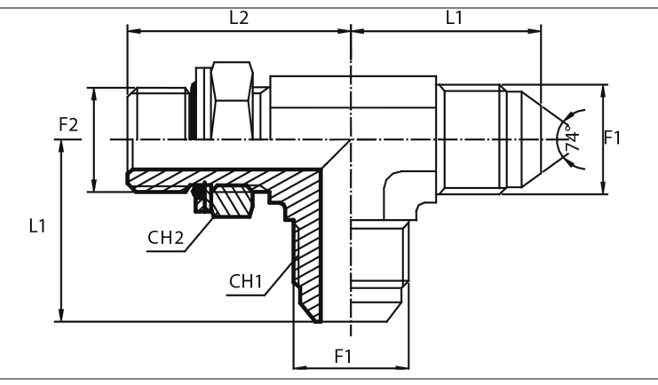 Aansluiting F1: UNF buitendraad, afdichting: JIC 74° conus.