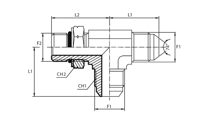 Aansluiting F1: UNF buitendraad, afdichting: JIC 74° conus.