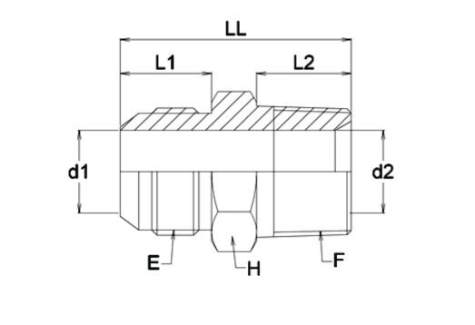 Aansluiting E: UNF buitendraad, afdichting: JIC 74° conus.