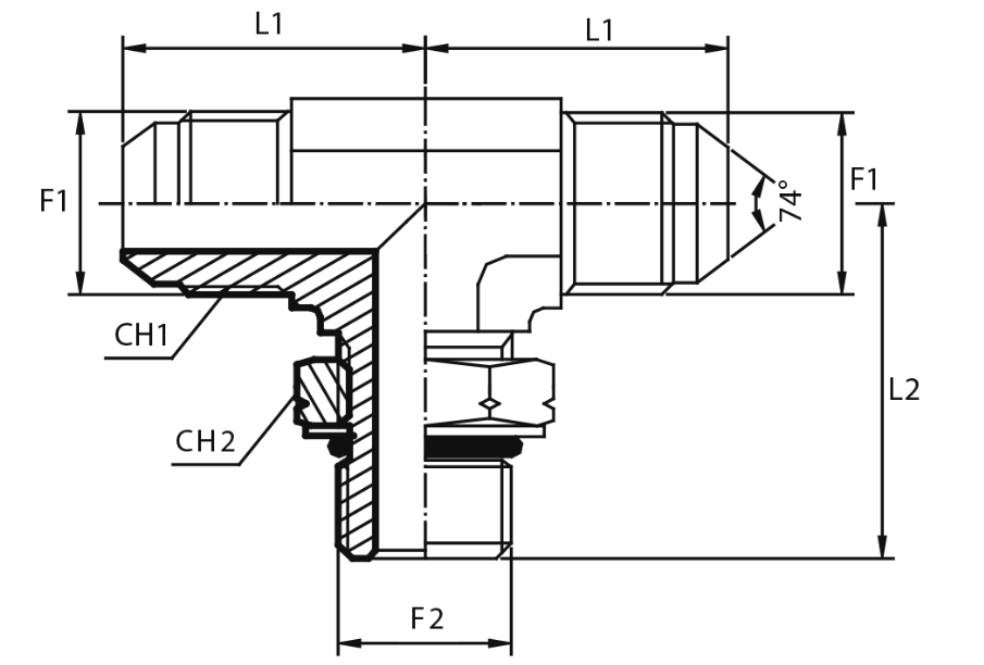 Aansluiting F1: UNF buitendraad, afdichting: JIC 74° conus.