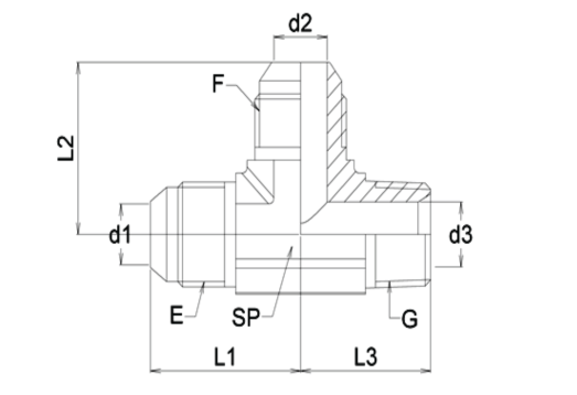 Aansluiting E en F: UNF buitendraad, afdichting: JIC 74° conus.