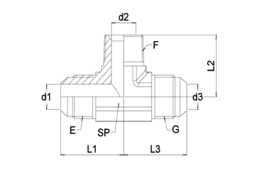 Aansluiting E en G: UNF buitendraad, afdichting: JIC 74° conus.