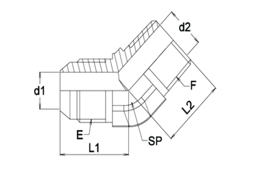 Aansluiting E : BSP buitendraad, afdichting: JIS 60° conus.
