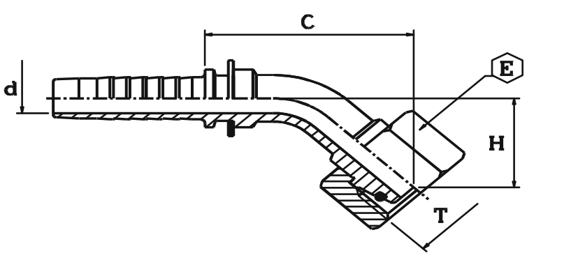 • METR. Wartel 45° DIN 3865-L C14MSOF0845S04