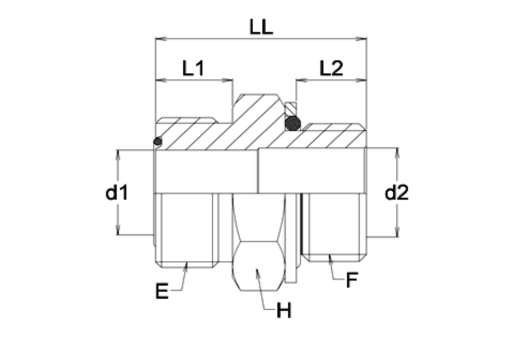 Aansluiting E: UNF buitendraad, afdichting: O-ring ORFS (O’Ring Face Seal) according SAE J516.