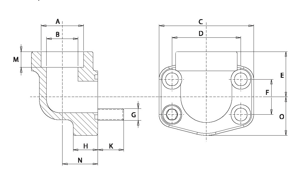 Uitvoering: SAE J518 6000 PSI, ISO 6162-2 haakse inlasflens voor inch buis.