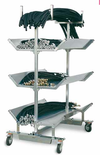 Deze slangenwagen is makkelijk, robuust en uitgevoerd met zwenkwielen voor een makkelijke verplaatsing. De juiste oplossing voor uw assemblageafdeling.Speciaal gemaakt voor transport van grote aantallen slang met een flink gewicht en afmetingen. De beste manier voor het organiseren van uw werk.