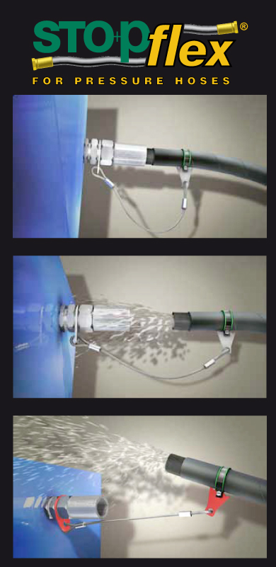 Een correct gemonteerd Stopflex systeem is op een testopstelling gemonteerd en getest om goede werking te verzekeren bij de maximum drukken in navolging op de regelgeving voor de productie van slangassemblages voor de volgende standaarden: UNI EN 853, UNI EN 854, UNI EN 855, UNI EN 856, UNI EN 857, SAE J517