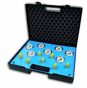 Testkoffer die op ieder hydraulisch apparaat kan worden aangesloten dat voorzien is van een standaard M16x2 meetpunt.