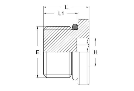 Aansluiting E: SAE UNF buitendraad, afdichting: O-ring.